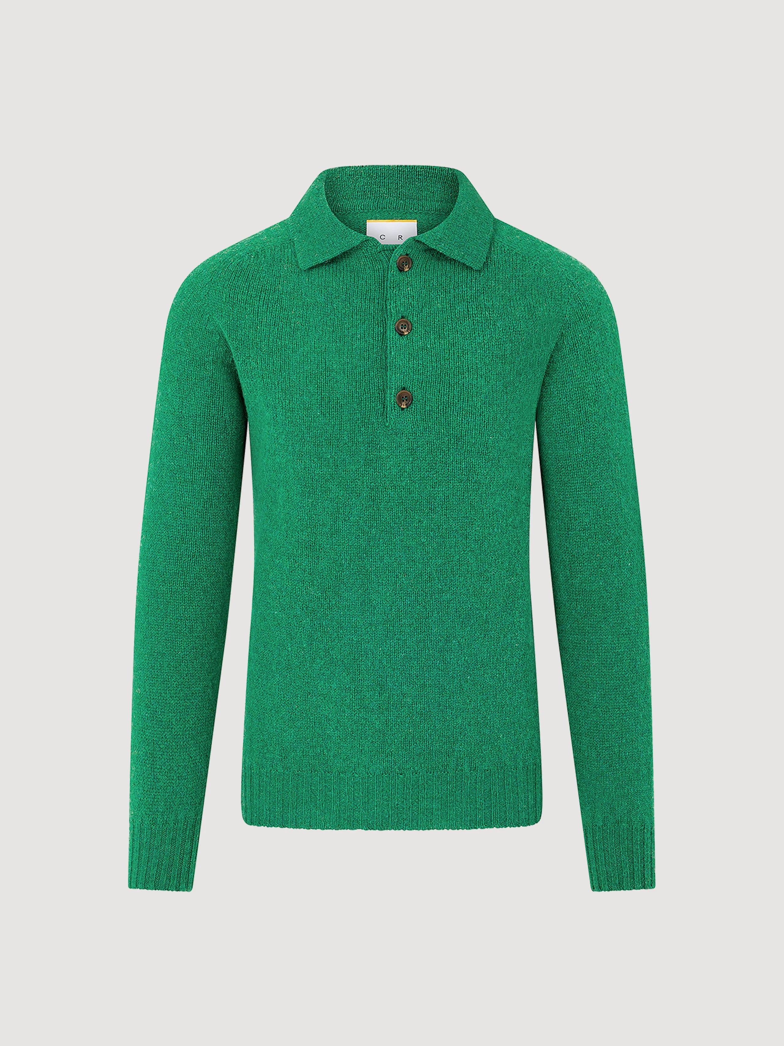 Emerald Green Shetland Wool Knitted Polo Sweater