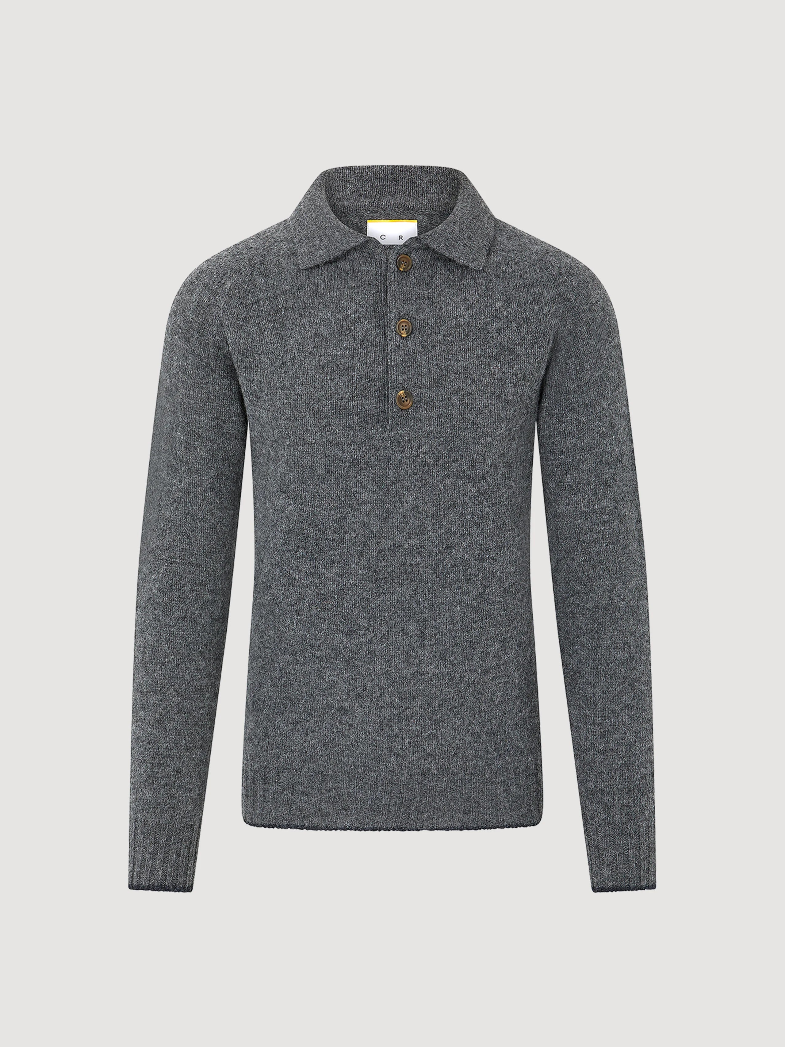 The Coconut Residence polo sweater is crafted in Scotland from pure Shetland wool, celebrated for its naturally soft handle and beautifully nuanced colours, including subtle contrast tipping on the hem and sleeves. Knitted in a seamless, homespun style that reflects traditional techniques, it offers exceptional comfort and a clean, flattering silhouette. Inherently versatile, it layers effortlessly throughout the year, providing warmth without the risk of overheating. It pairs equally well with denim or chinos and can be worn comfortably over a shirt.